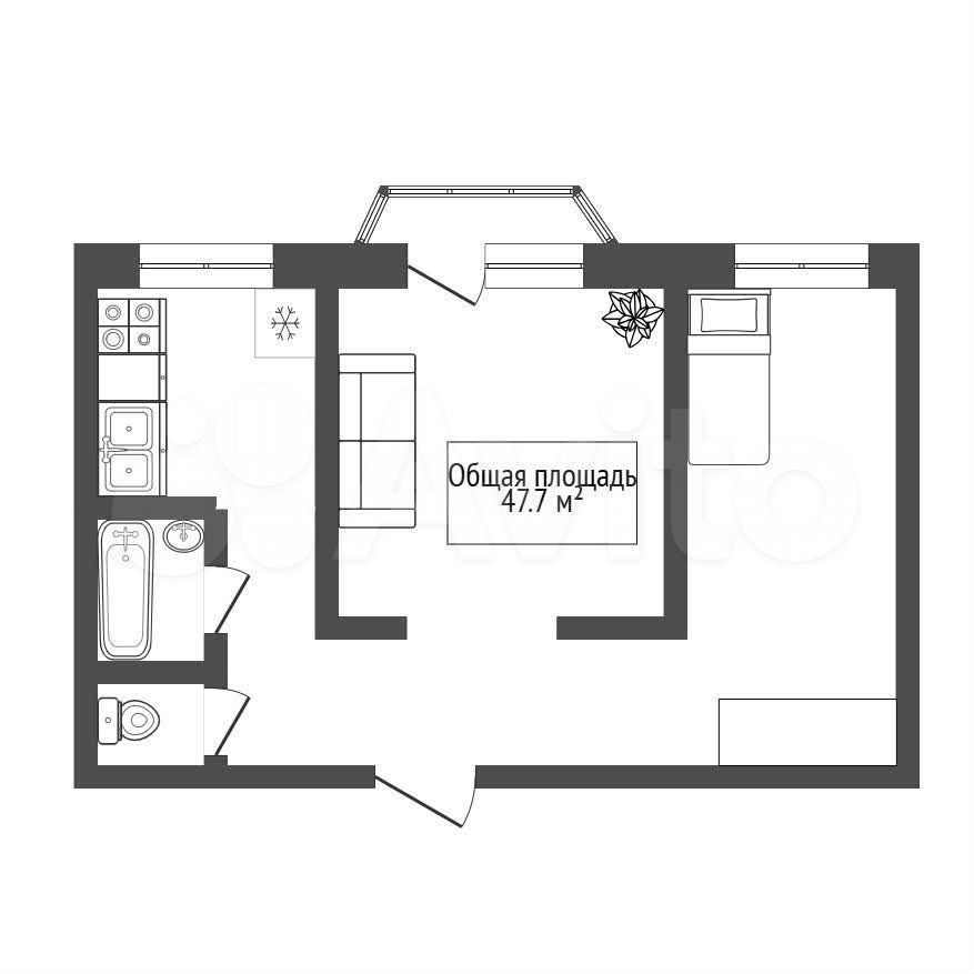 - Общая площадь: 47.7 м2