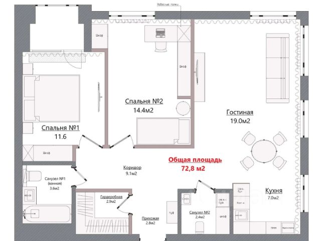 - Общая площадь: 73 м2