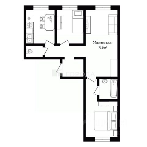 - Общая площадь: 71 м2