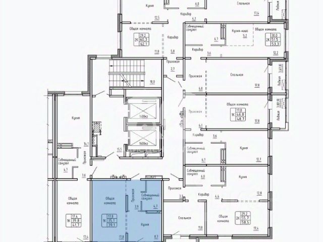 - Общая площадь: 39.1 м2