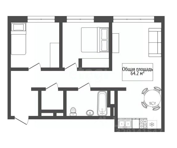- Общая площадь: 64.2 м2