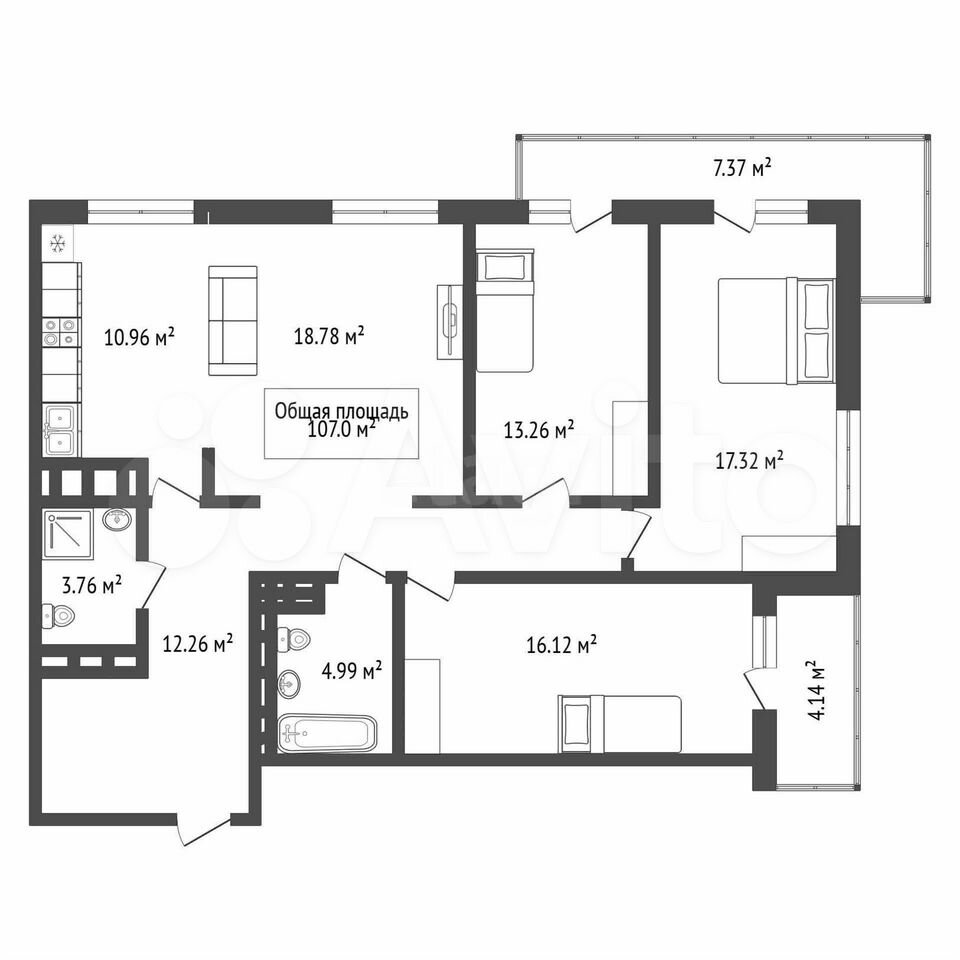 - Общая площадь: 107 м2