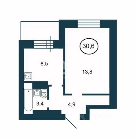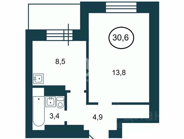 - Общая площадь 30.6 м2