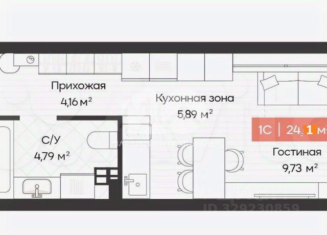 - Общая площадь 24.1 м2