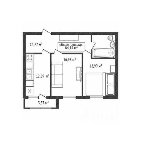 - Общая площадь 62.1 м2