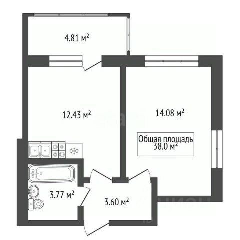 - Общая площадь: 33.9 м2