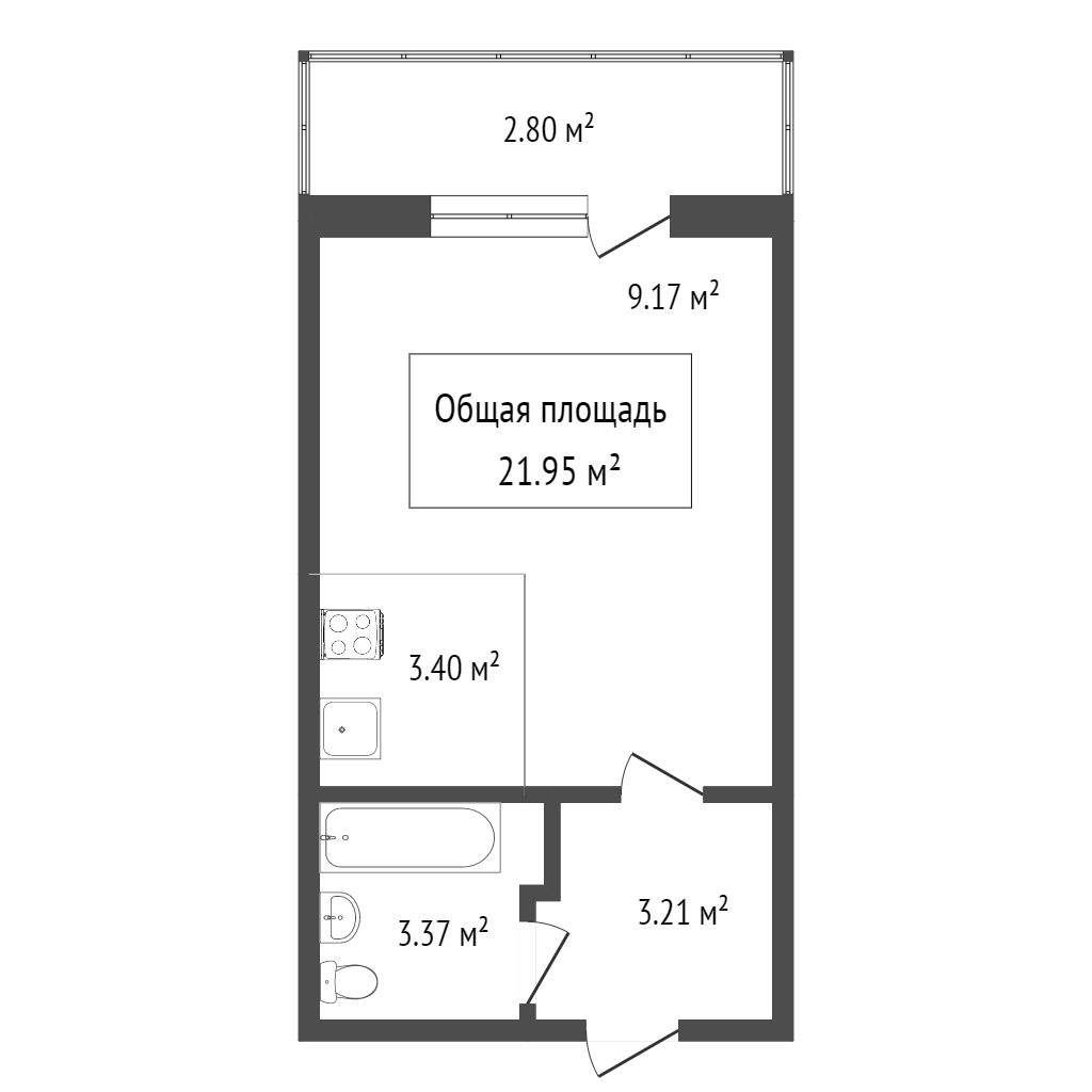 - Общая площадь: 19.4 м2