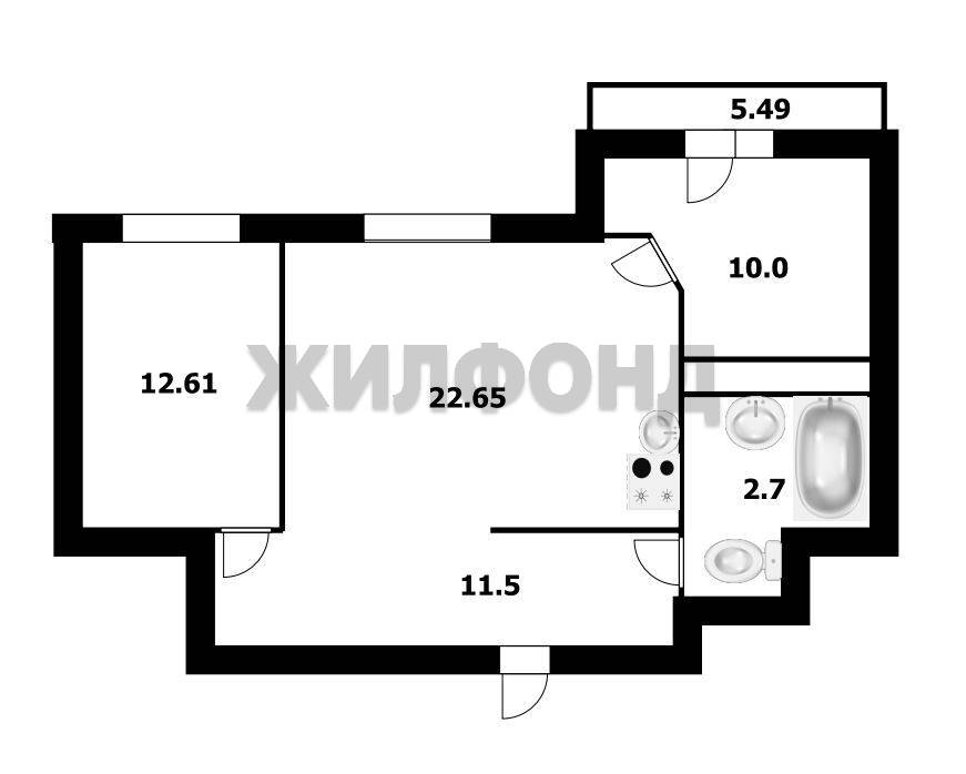 - Жилая площадь: 22.6 м2