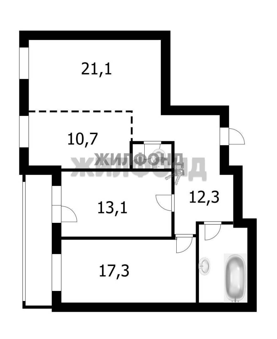 - Площадь кухни: 10.7 м2