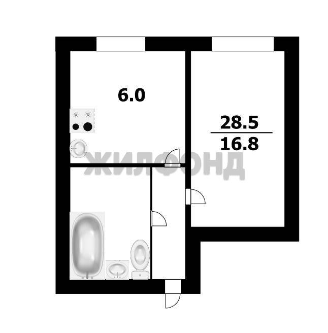 - Общая площадь 28.5 м2