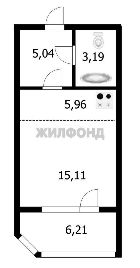 - Жилая площадь: 19 м2