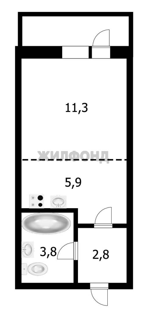 - Жилая площадь: 11.3 м2