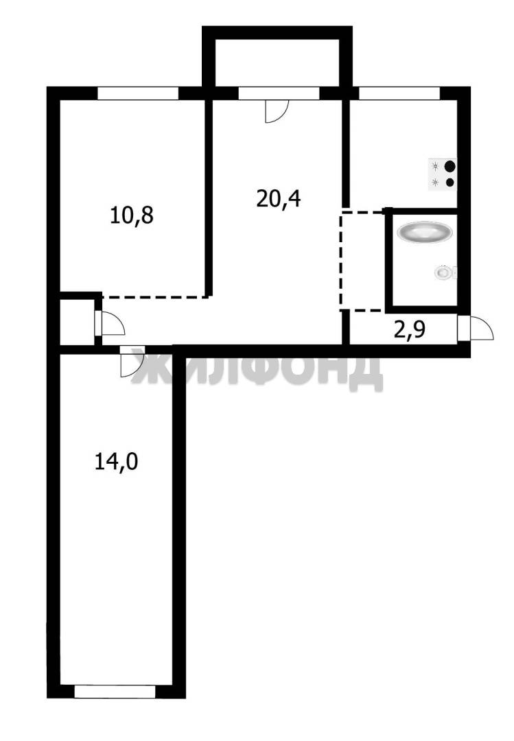 - Общая площадь: 58.3 м2